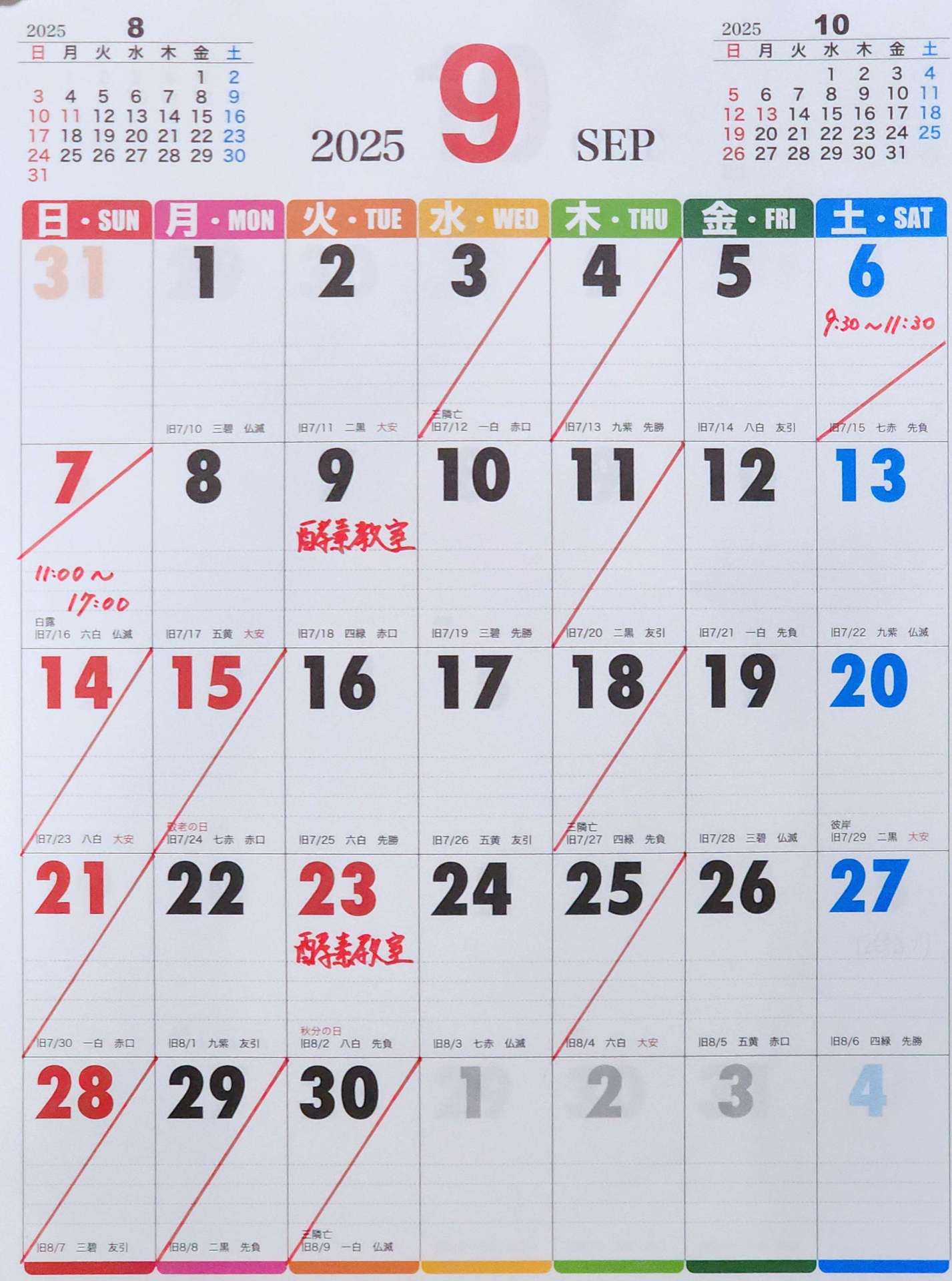 9月は9日、23日